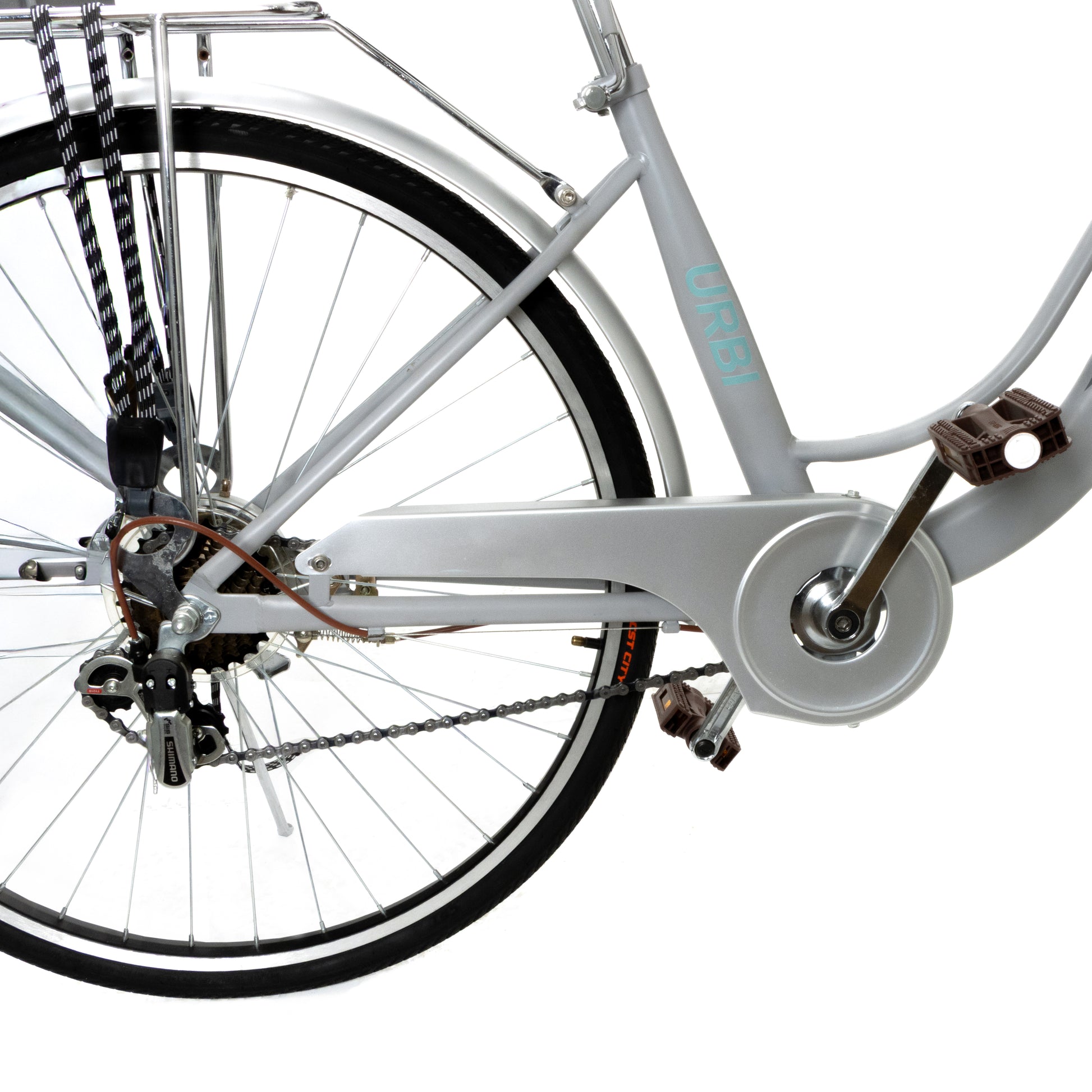 Cada detalle de la URBI ha sido concebido para ofrecer una conducción suave, estable y refinada, combinando materiales de alta resistencia con componentes Shimano que garantizan precisión y durabilidad. Es una bicicleta creada para quienes buscan funcionalidad premium con estética urbana atemporal.
