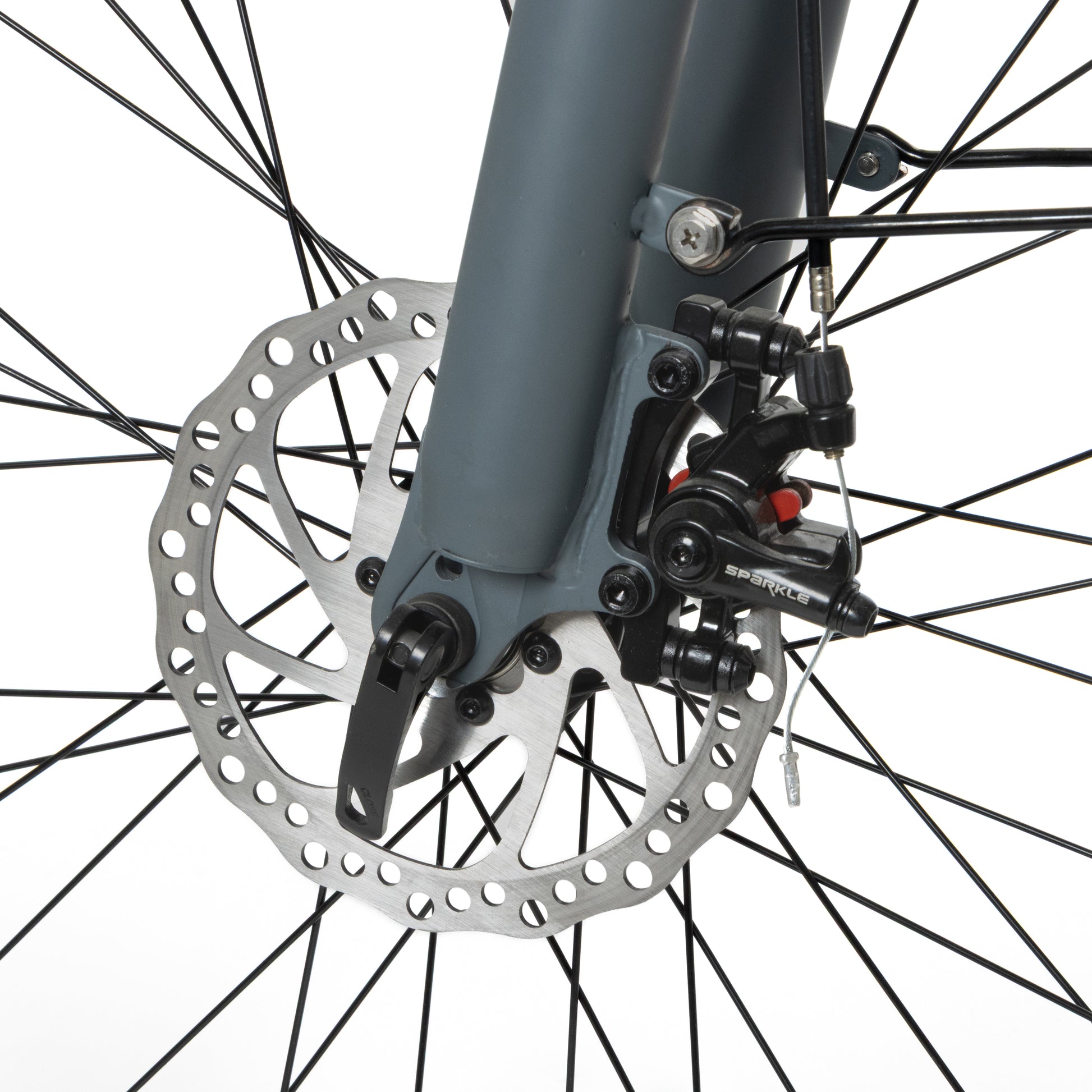 Su cuadro de acero de alta resistencia, la suspensión delantera y los frenos de disco en ambas ruedas ofrecen una conducción sólida, estable y segura, incluso en calles irregulares, pendientes pronunciadas o superficies mojadas. Es una bicicleta pensada para dominar la ciudad, no solo recorrerla.